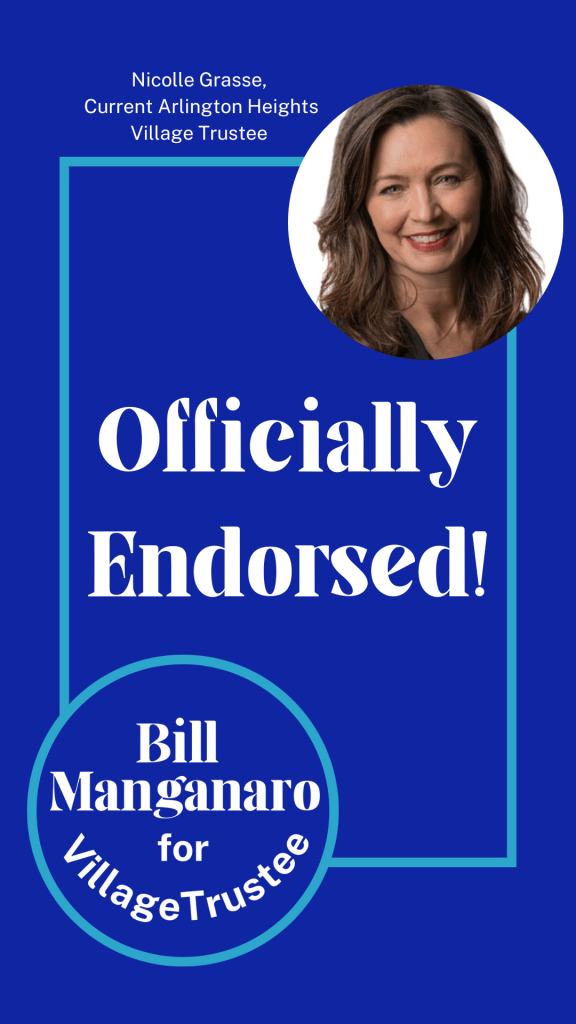 “I am proud to endorse Bill Manganaro for Village Trustee because I know he will be a hard worker for all of us. I know Bill will be fair, responsive, fiscally responsible, and he will always prioritize the health, safety, and welfare of everyone in our village. As a firefighter/EMT, engineer, and healthcare leader, Bill brings a unique and valuable perspective to our community that will be a vital necessity with any future changes and big developments for our village.