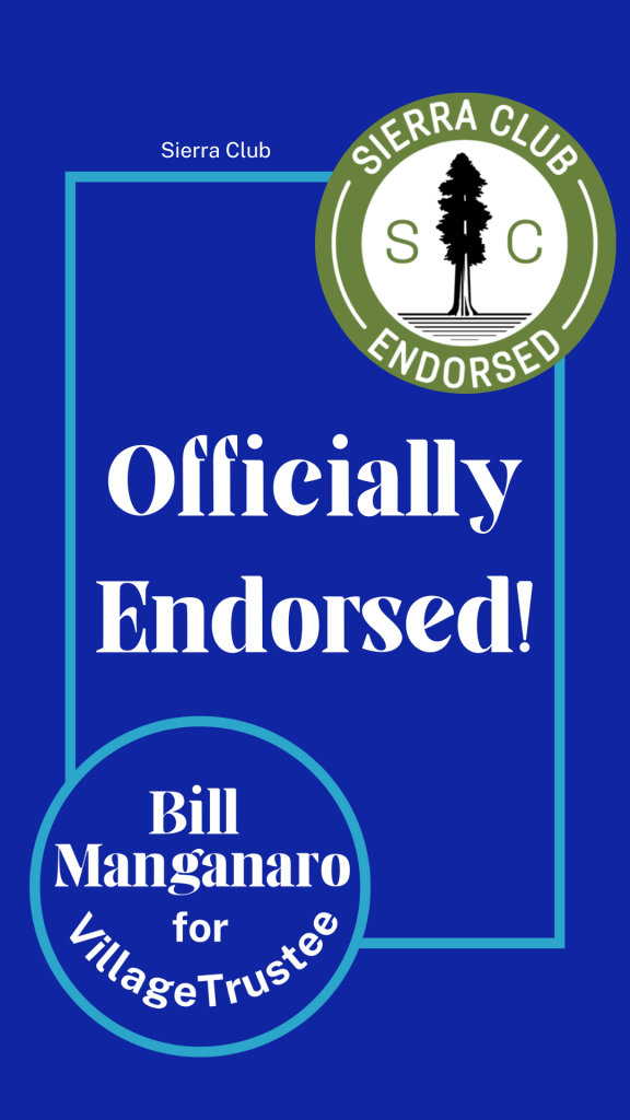 I am grateful to receive the Sierra Club’s endorsement! While all candidates sought this honor, only two earned it. I am a Sierra Club member and lifelong advocate for good stewardship of our planet. As Trustee, I will work to ensure that sustainability remains a top strategic priority for our Village government.